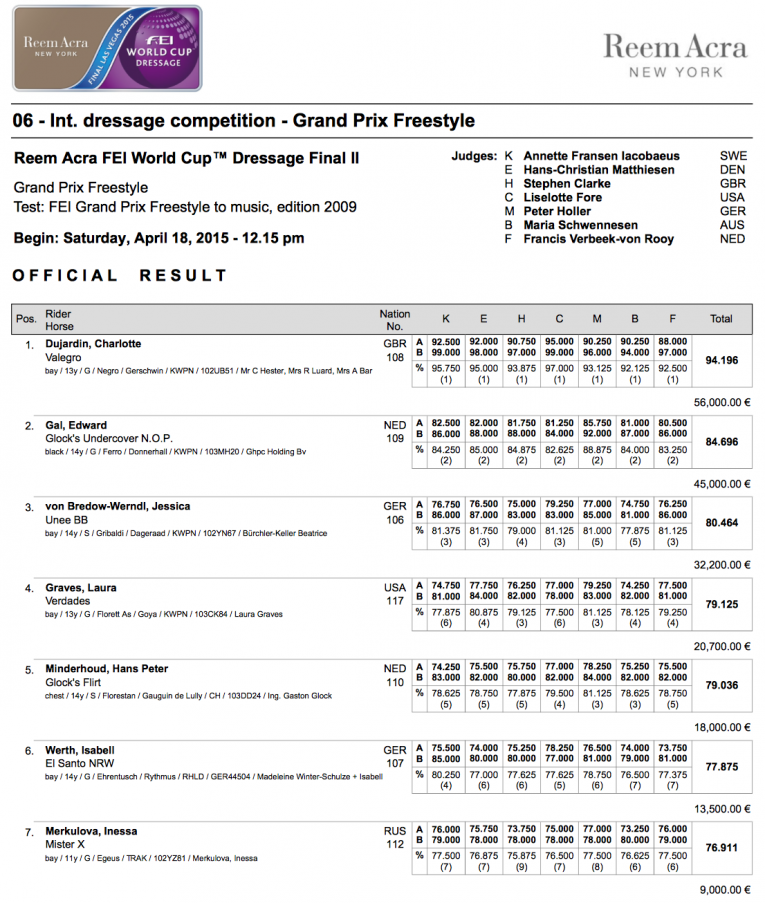 1. Charlotte Dujardin GBR / Valegro / 94,196 %