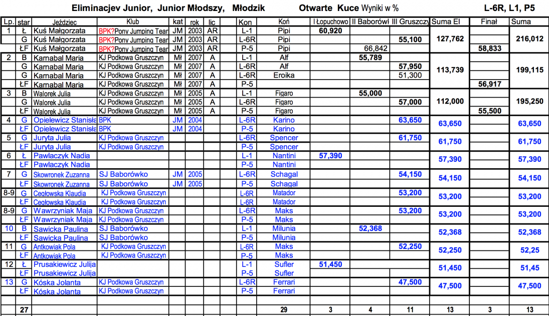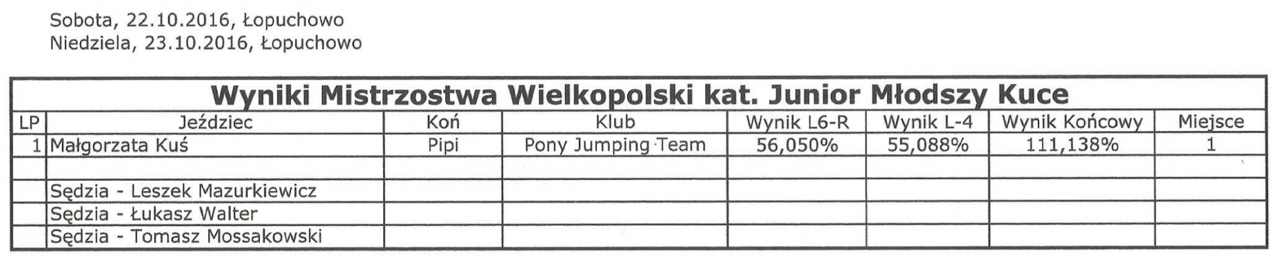 Finał Pucharu Wielkopolski w Ujeżdżeniu Junior / Junior Młodszy / Młodzik KUCE