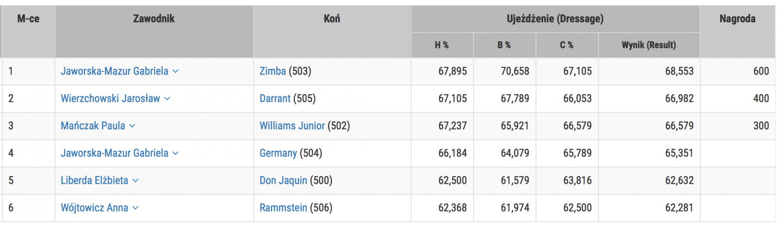 WYNIKI KONKURSU CC5 Inter I Cavaliada Lublin 05/02/16