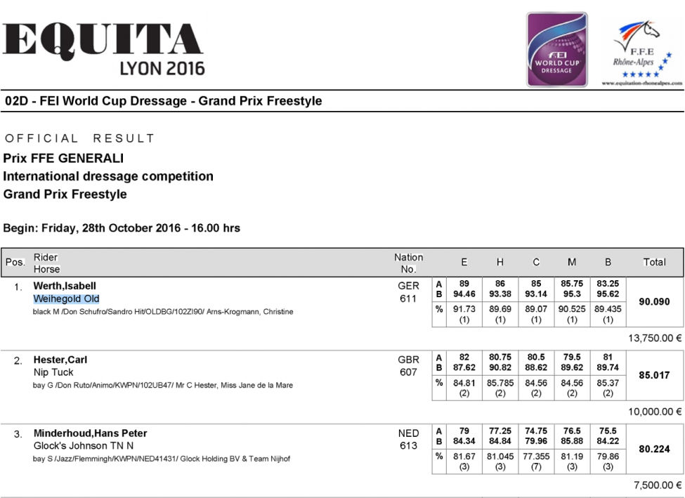 Isabell Werth triumfuje w Lyonie 28/10/2016