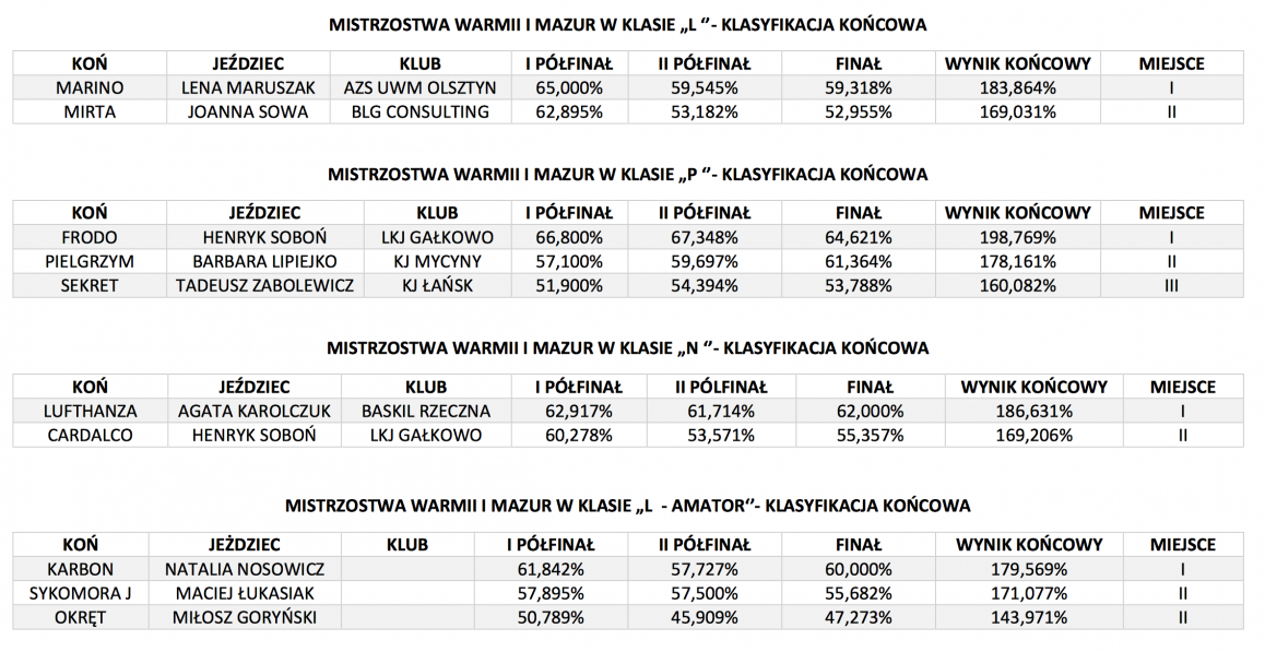 WYNIKI ZAWODY REGIONALNE / TOWARZYSKIE