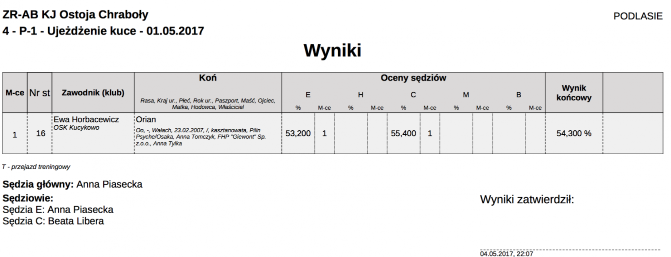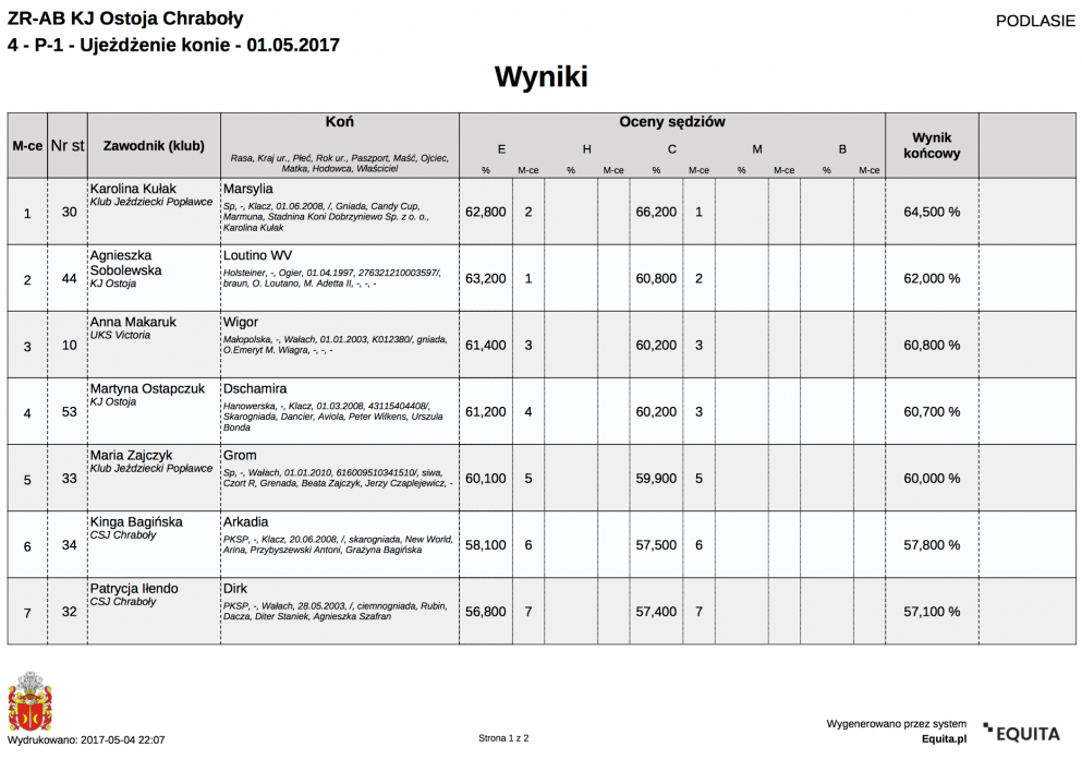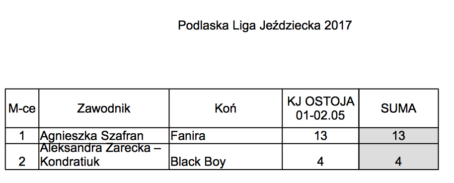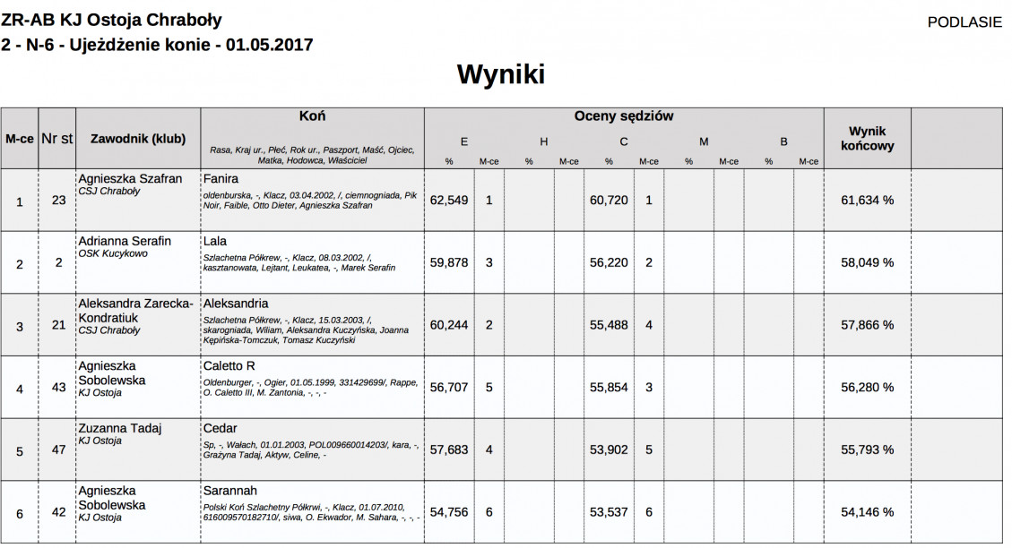 PODLASKA LIGA JEŹDZIECKA 2017 - Ujeżdżenie - Klasa P