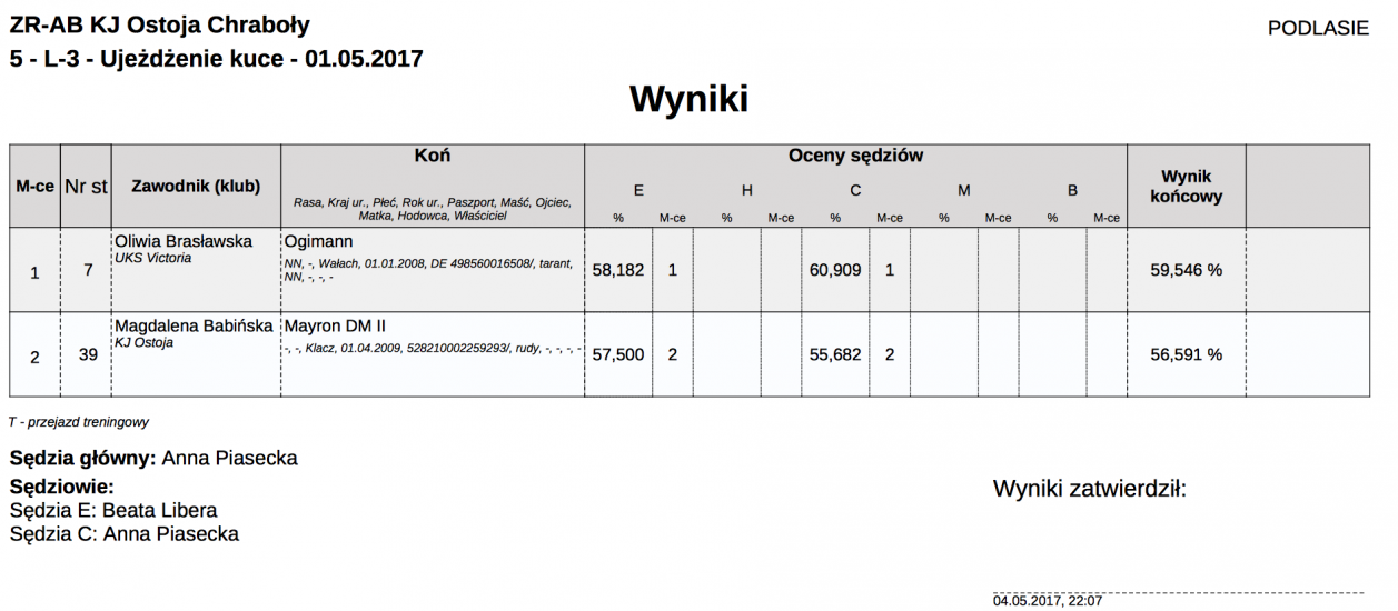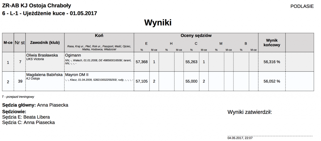 PODLASKA LIGA JEŹDZIECKA 2017 - Ujeżdżenie - Klasa N