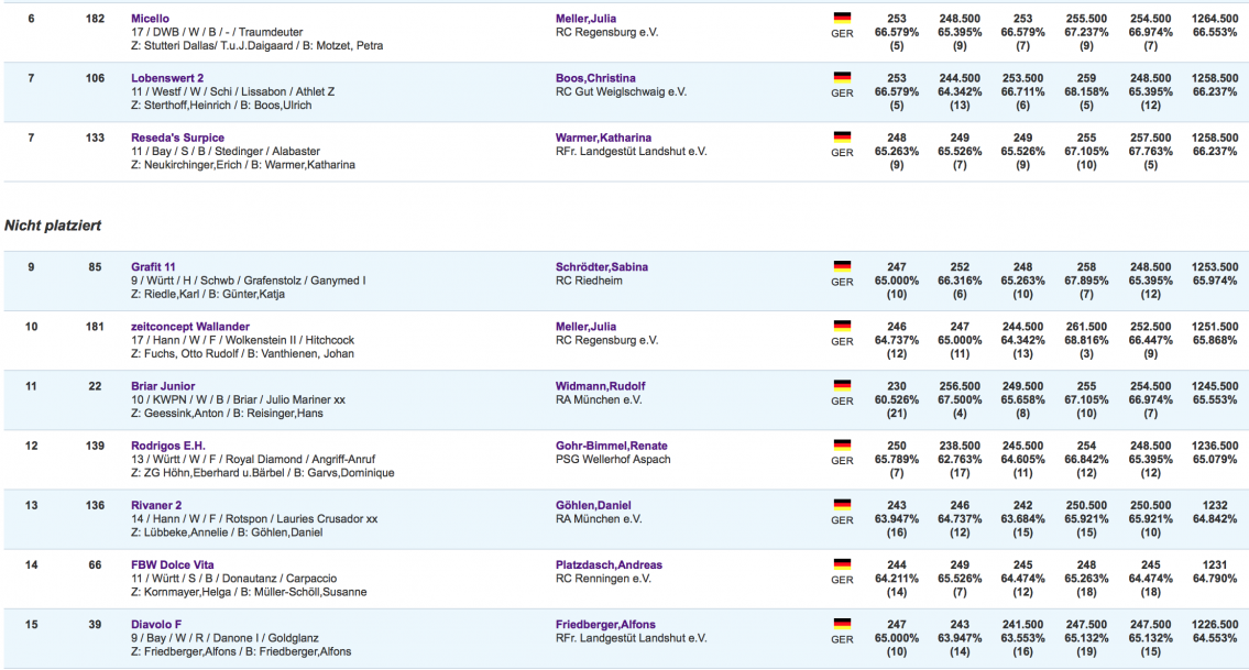 Dressurprüfung Kl.S*** mit Piaffe und Passage WYNIKI