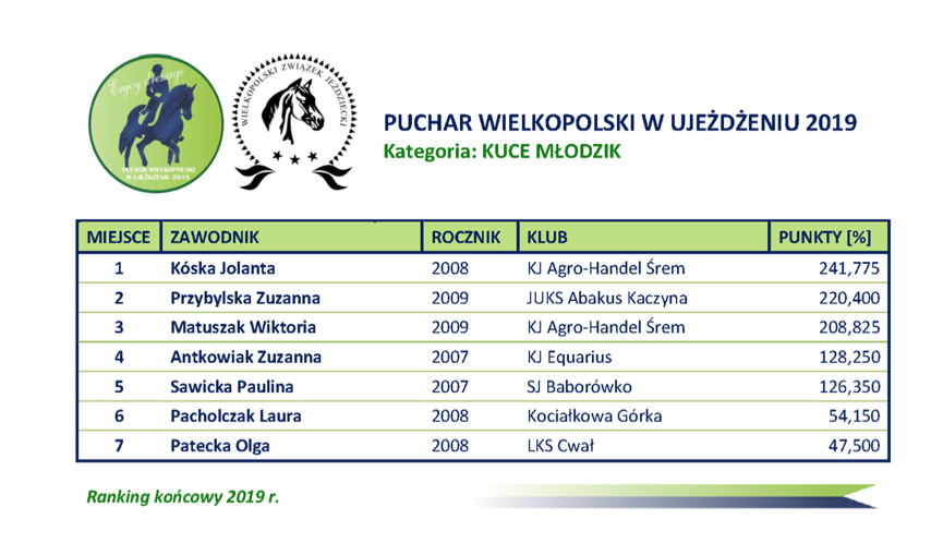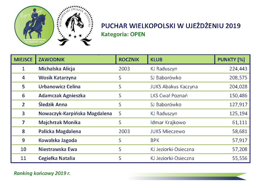 WYNIKI - Mistrzostwa Wielkopolski w ujeżdżeniu 2019