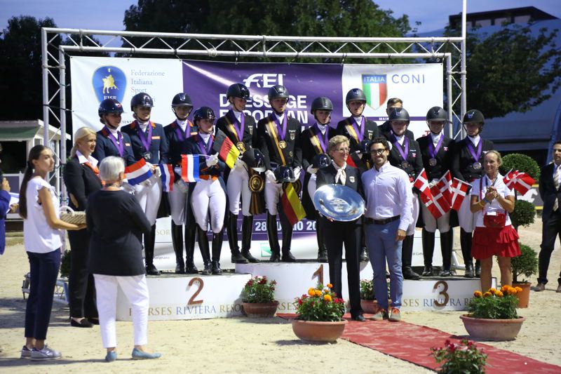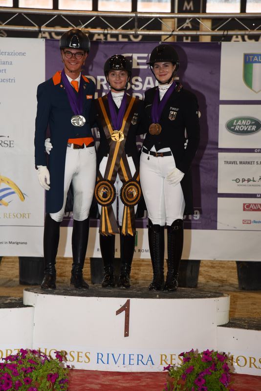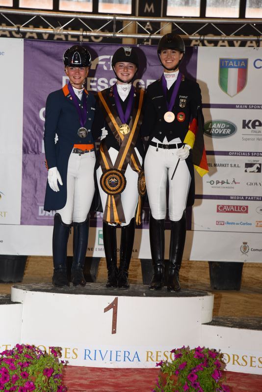 13 letnia Allegra Schmitz-Morkramer z Niemiec dosiadająca Lavissaro wygrała dwa złote medale ME Dzieci z kapitalnymi wynikami - medal indywidualny z 78,607% oraz medal zespołowy z 78,385% w TEAM Test.