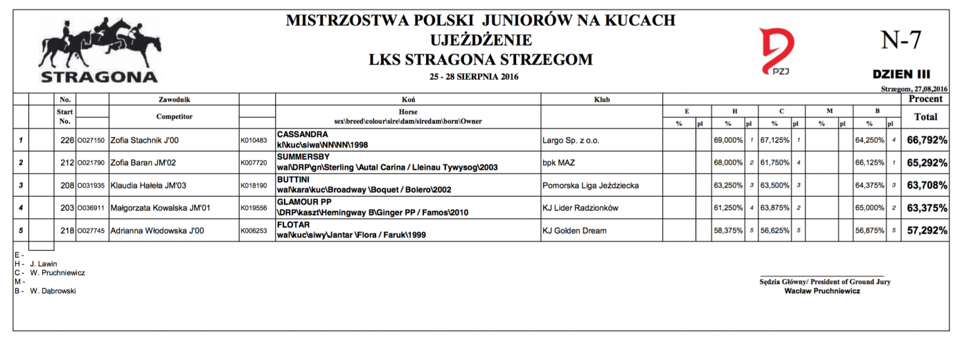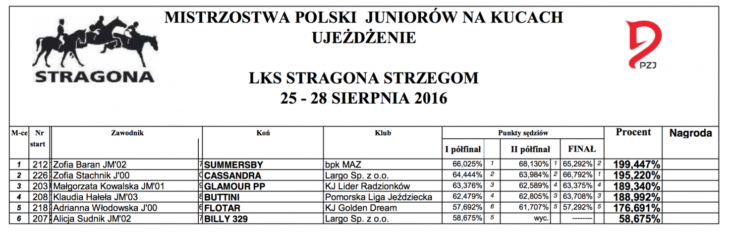 Mistrzostwa Polski Juniorów na Kucach 2016 WYNIKI