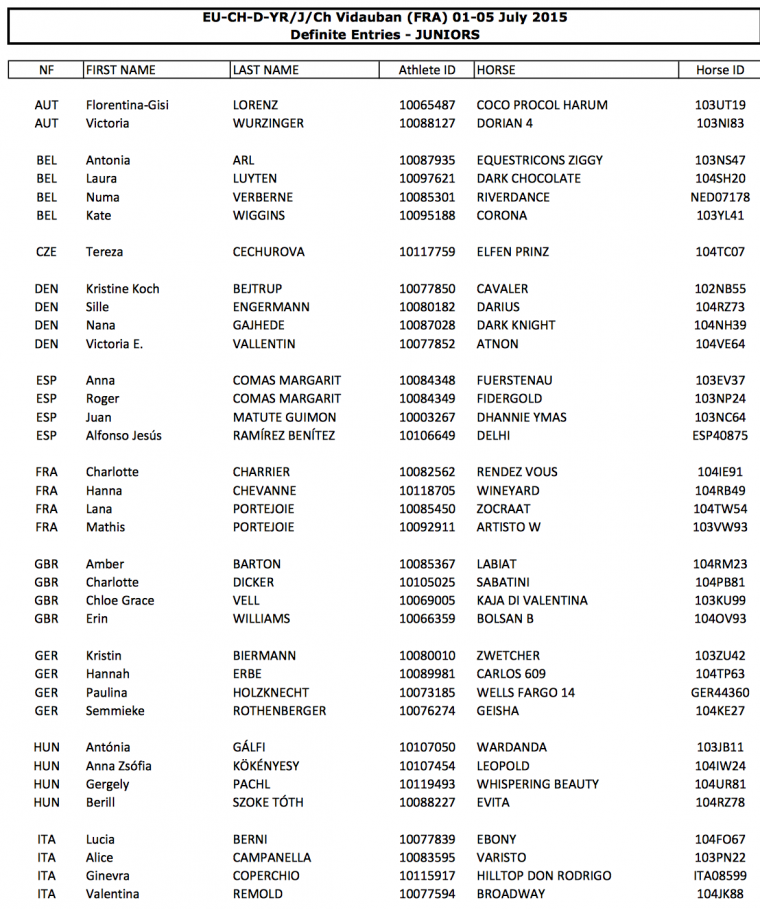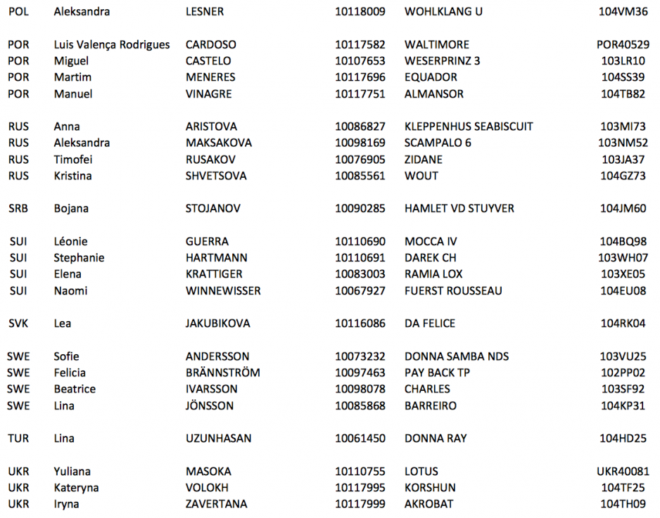 zgłoszenia z dnia 25/06/15 / uzupełnione o Reprezentantów Polski /