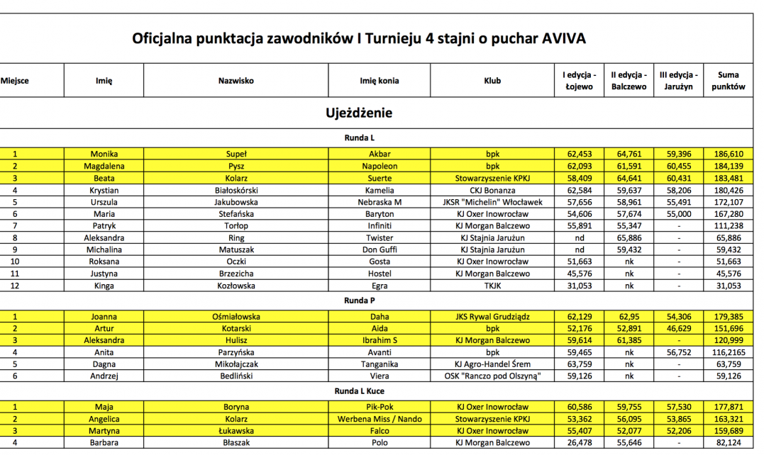 PUCHAR AVIVY 2016 w Ujeżdżeniu