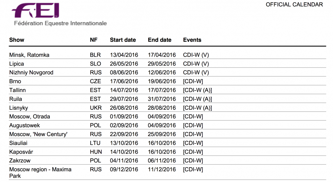 Zawodami na Białorusi w dniach 13-17.04.16 rozpoczną się kwalifikacje do Finału Pucharu Świata w 2017, który rozegrany zostanie w Omaha NE w Stanach Zjednoczonych na przełomie marca i kwietnia 2017. Do kalendarza Ligi Europy Centralnej zgłoszono 14 imprez.