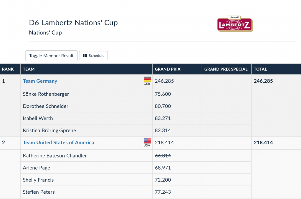 Reprezentacja Niemiec na miesiąc przed IO w RIO w top formie. Ekipa w składzie Kristina Bröring-Sprehe, Isabell Werth, Dorothee Schneider i Sönke Rothenberger zdecydowanie wygrała Puchar Narodów w Aachen. Trzy zawodniczki w ekipie uzyskały wynik powyżej 80 % ( ! )