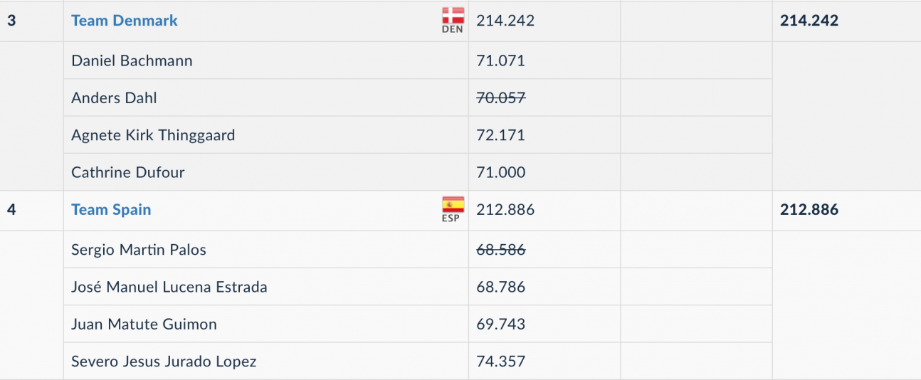 Isabell Werth na 11 letniej Weihegold z wynikiem 83,271 % była najlepsza w całym konkursie a najmłodszy w ekipie Niemiec Sönke Rothenberger (21) na 9 letnim Cosmo uzyskał piąty wynik w całym konkursie 75,600.