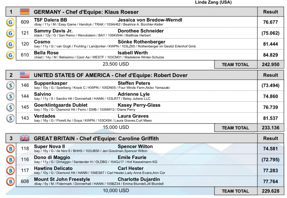 WEG Tryon 2018 Mistrzostwa Świata w Ujeżdżeniu - klasyfikacja zespołowa
