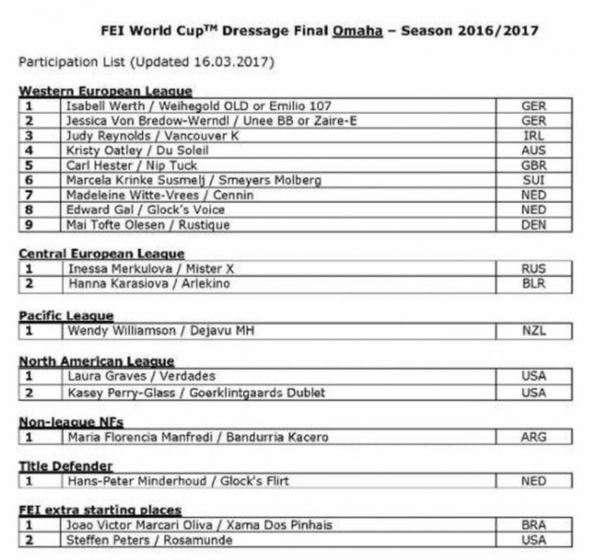 Finał Pucharu Świata w Ujeżdżeniu Omaha 29 marca - 2 kwietnia 2017