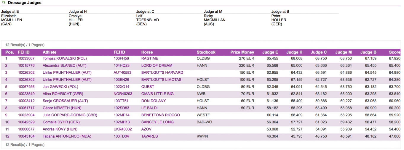 WYNIKI KONKURS GRAND PRIX FREESTYLE