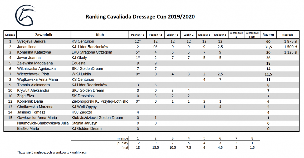 Sandra Sysojeva wygrała wszystkie etapy Cavaliada Tour w sezonie 2019/20 oraz pewnie zwyciężyła w końcowym rankingu, gromadząc komplet punktów.