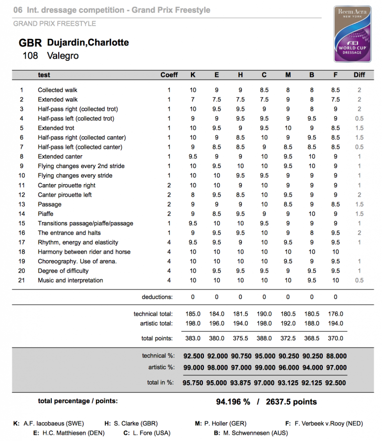 1. Charlotte Dujardin GBR / Valegro / 94,196 %