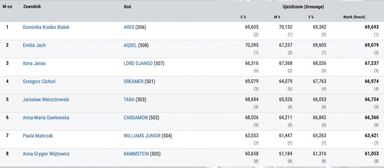 RANKING KPMG CAVALIADA TOUR przed Finałem