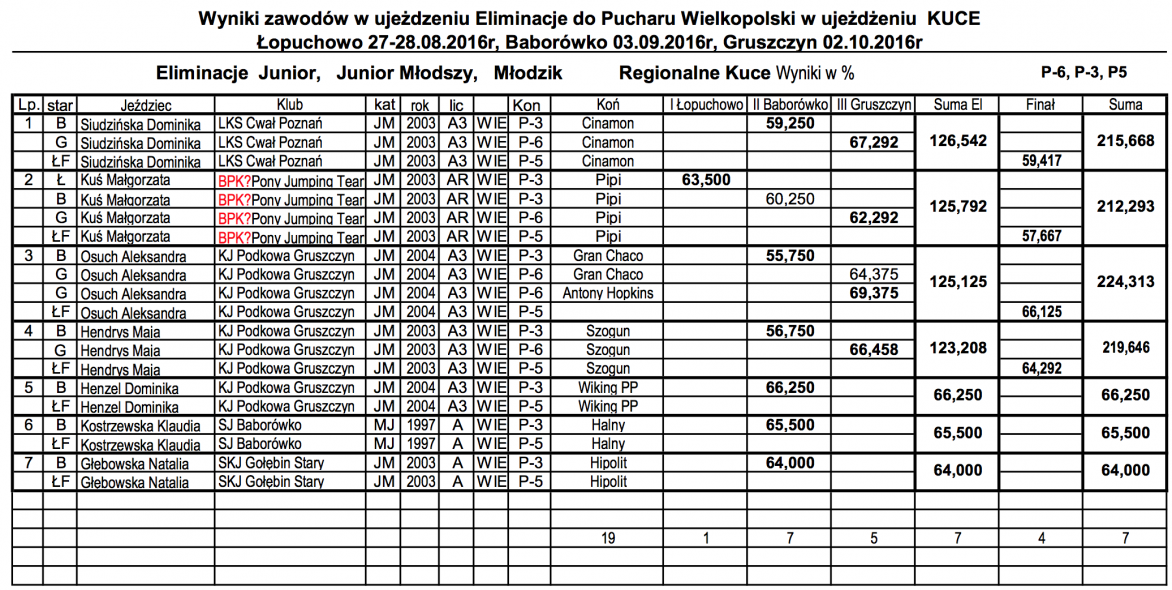 Finał Pucharu Wielkopolski w Ujeżdżeniu Junior / Junior Młodszy / Młodzik KUCE
