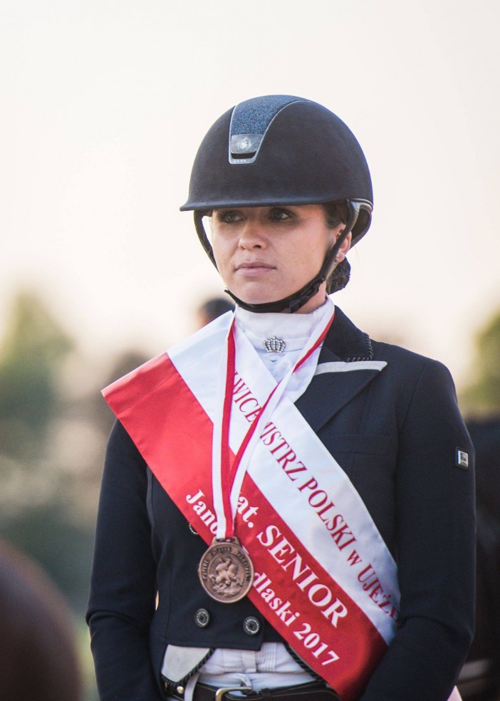 Gabriela Jaworska - Mazur Sezon 2017 uważam za bardzo udany. Wyniki Zimby oscylowały w granicach 67%, zdobyłam w Janowie Podlaskim brązowy medal Mistrzostw Polski Seniorów. W 2018 rok planuję wystartować 4 - 5 razy na Zimbie w zawodach CDI i chciałabym poprawić rezultaty z mijającego roku. Poza koniem Zimba posiadam dwa bardzo utalentowane i równie temperamentne konie rasy lusitano, którymi planuje rozpocząć sezon w konkursach na zawodach ogólnopolskich. W stawce moich koni są trzy obiecujące młode konie, będę starała się w nadchodzącym sezonie zakwalifikować je do udziału w MPMK oraz dwa konie po ogierach Milenium i Destano z którymi wiążę wielkie nadzieje na przyszłość. Sezon 2018 zapowiada mi się więc pracowicie.