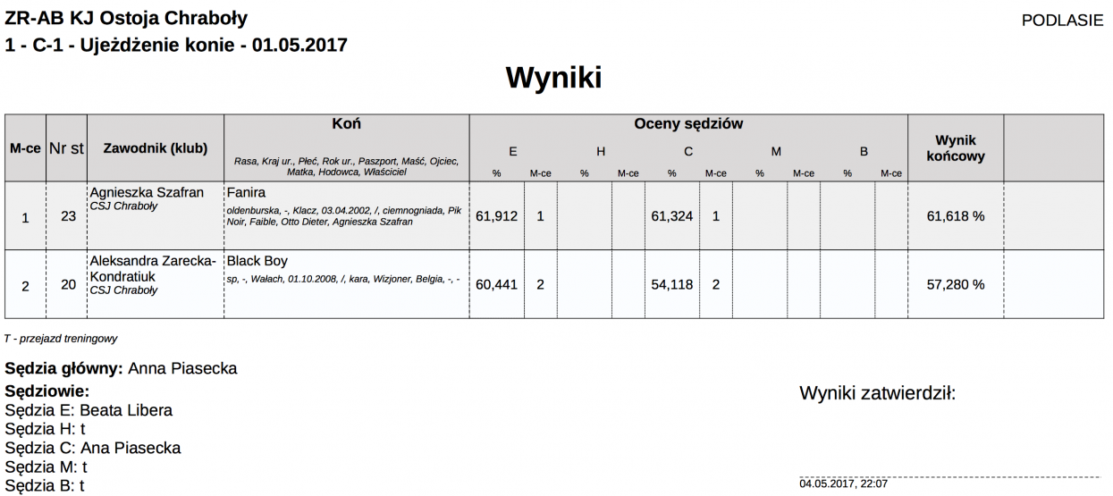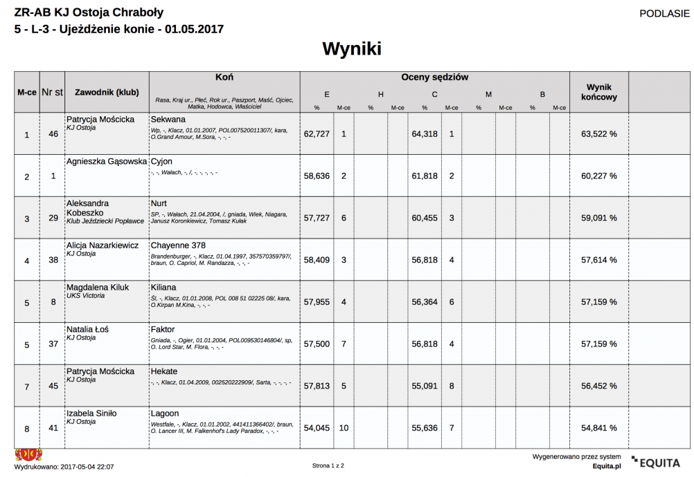 PODLASKA LIGA JEŹDZIECKA 2017 - Ujeżdżenie - Klasa C