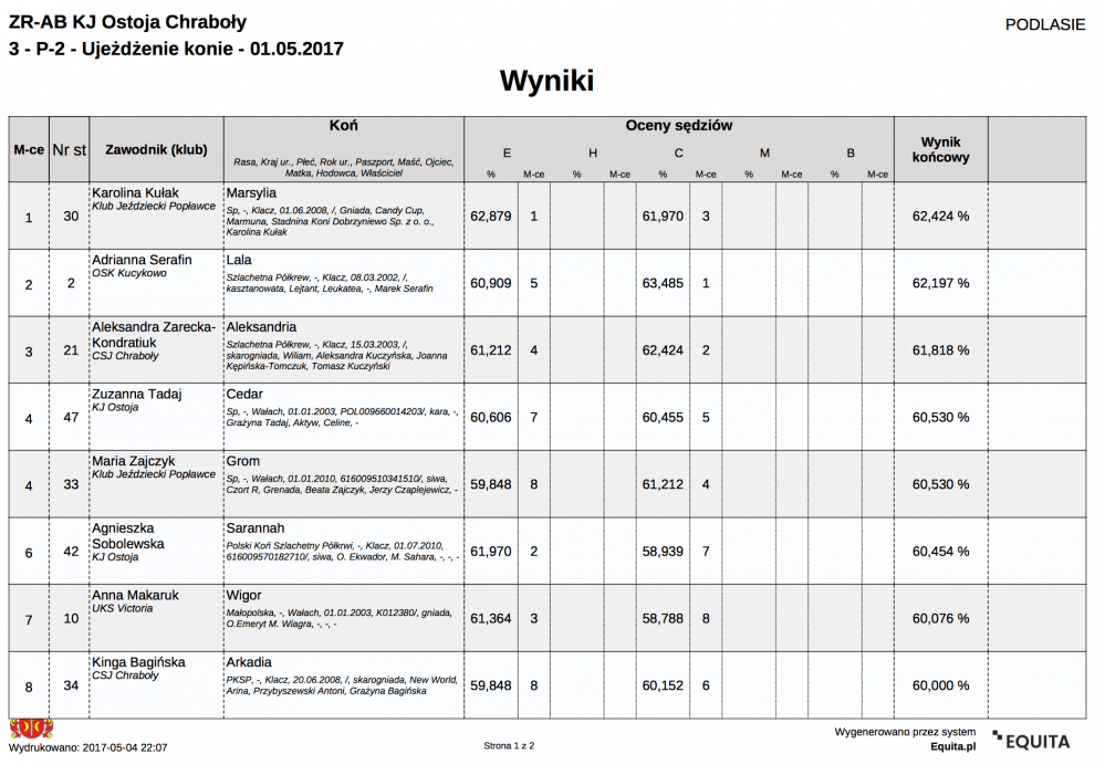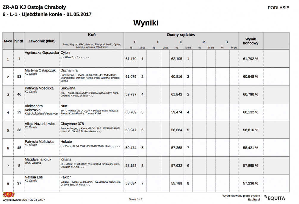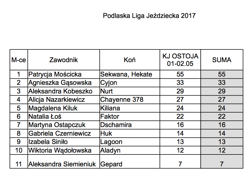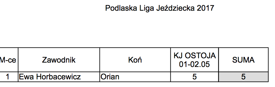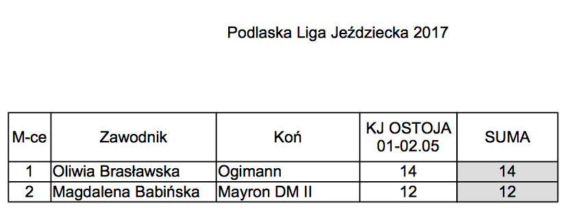 PODLASKA LIGA JEŹDZIECKA 2017 - Ujeżdżenie - Klasa P