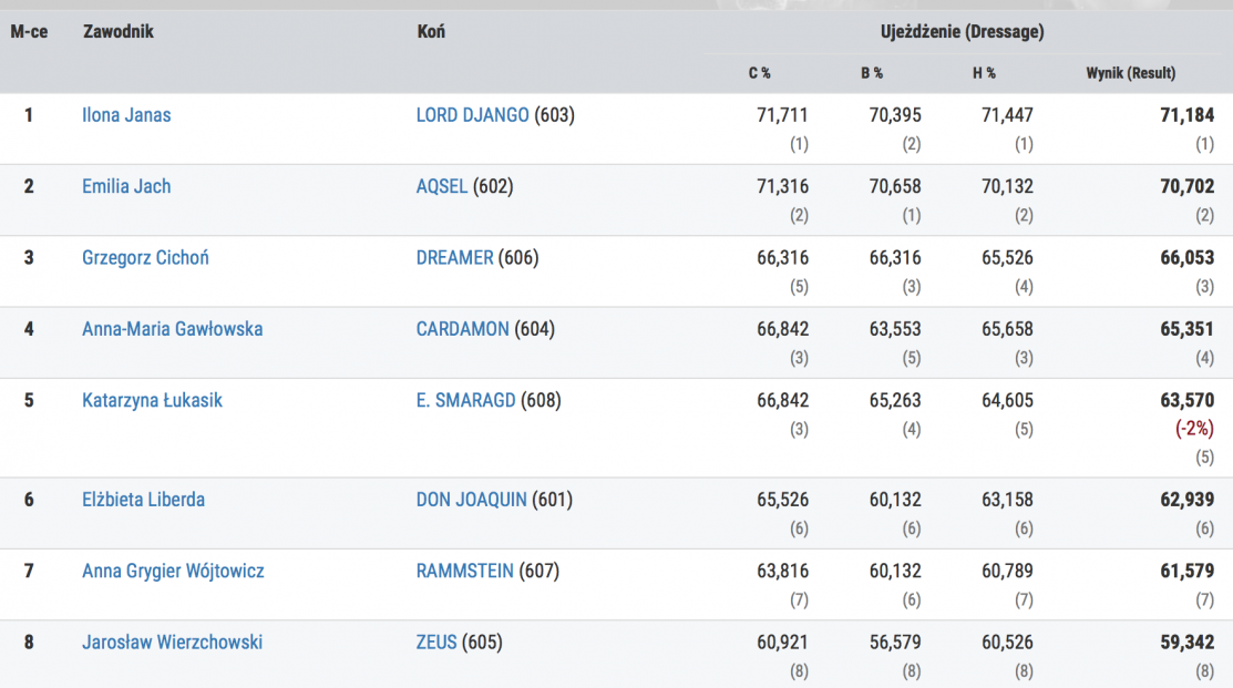 WYNIKI Konkursu Inter I CC5 o nagrodę KPMG, pod patronatem dressage24.pl