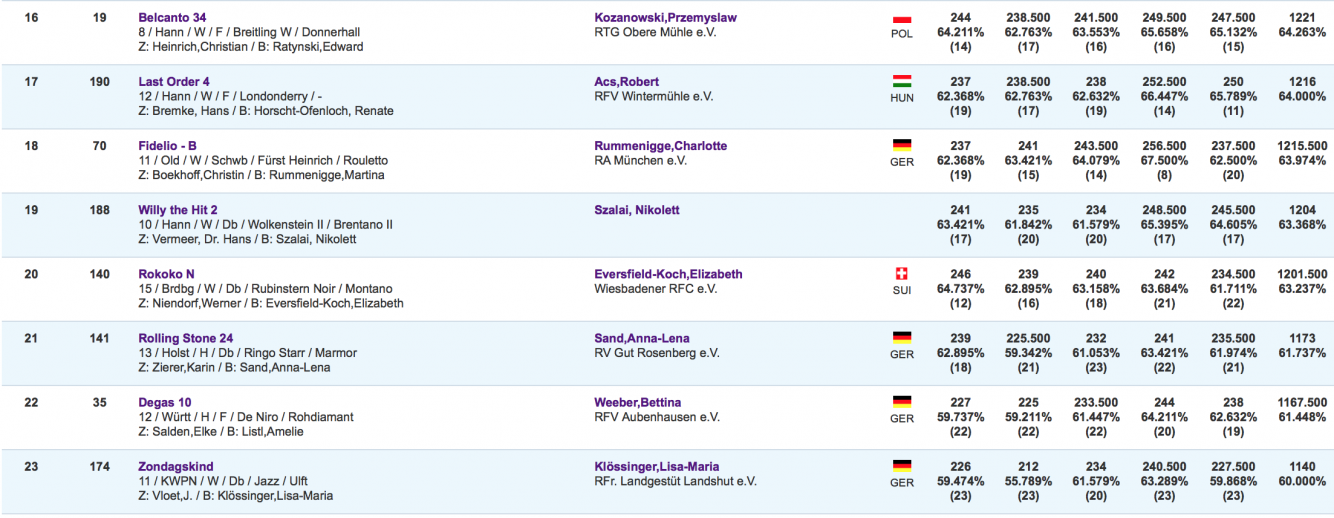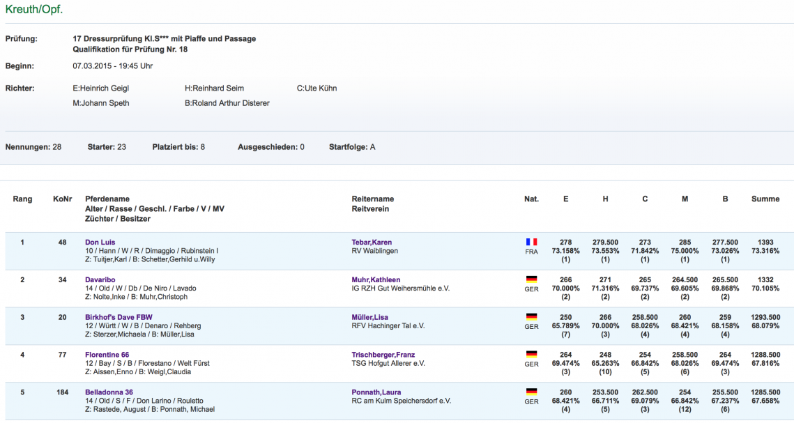 Dressurprüfung Kl.S*** mit Piaffe und Passage WYNIKI