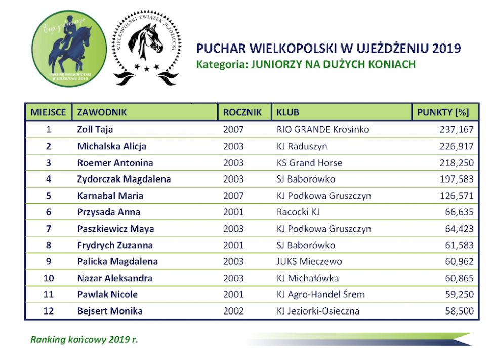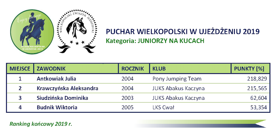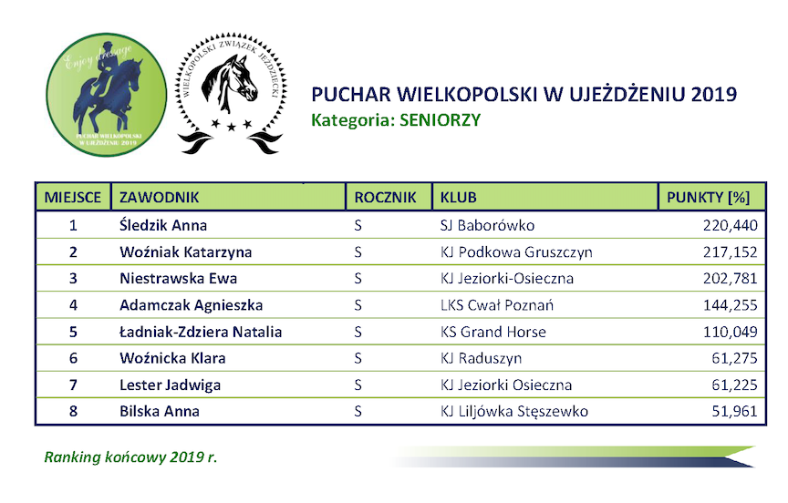 WYNIKI - Mistrzostwa Wielkopolski w ujeżdżeniu 2019