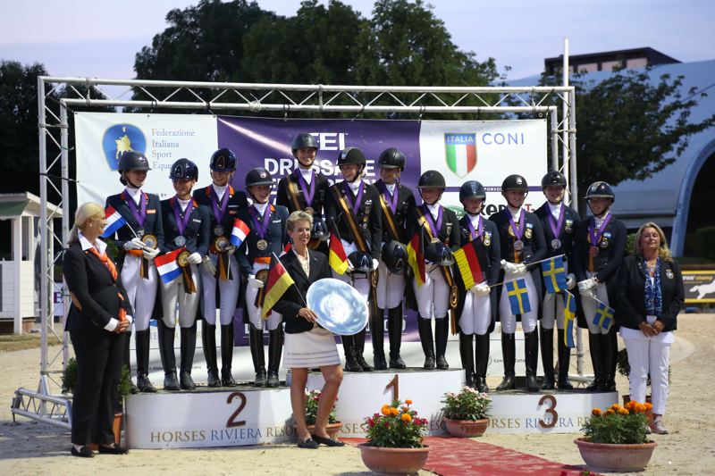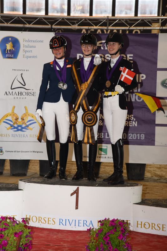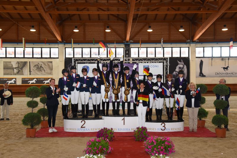 13 letnia Allegra Schmitz-Morkramer z Niemiec dosiadająca Lavissaro wygrała dwa złote medale ME Dzieci z kapitalnymi wynikami - medal indywidualny z 78,607% oraz medal zespołowy z 78,385% w TEAM Test.