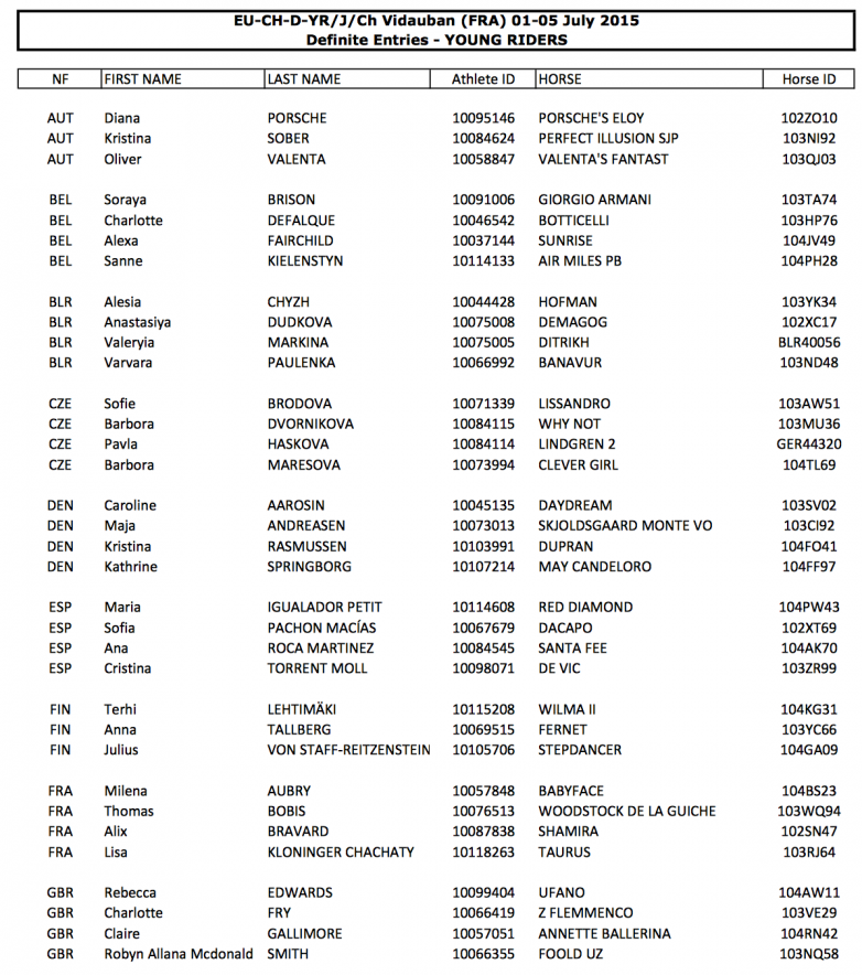 zgłoszenia z dnia 25/06/15 / uzupełnione o Reprezentantów Polski /