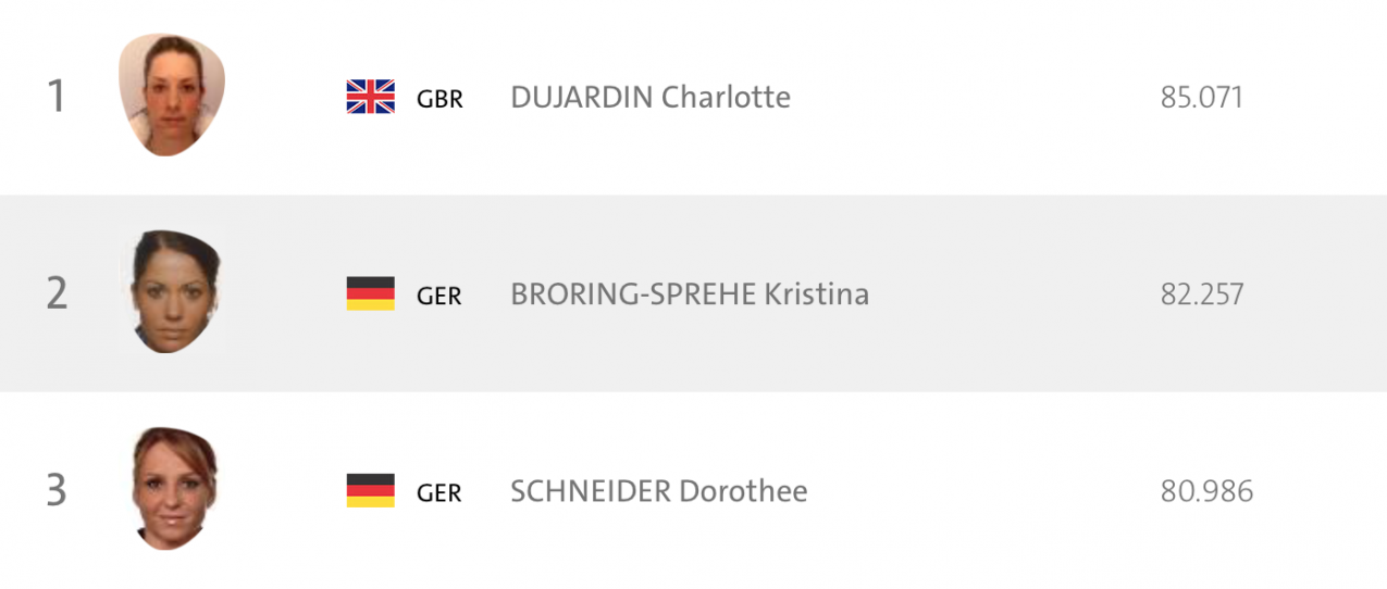 Niemcy: Kristina Broring-Sprehe (Desperados FRH), Sönke Rothenberger (Cosmo), Dorothee Schneider (Showtime FRH), Isabell Werth (Weihegold OLD). Reserve: Hubertus Schmidt (Imperio).