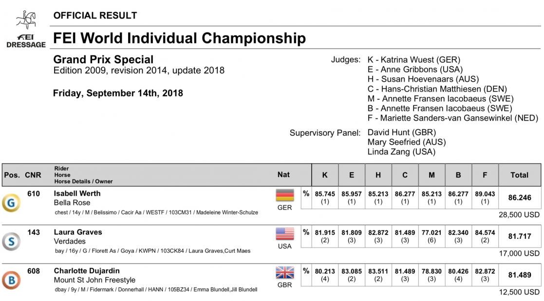 Podium Indywidualne GPS - Mistrzostwa Świata w Ujeżdżeniu - Tryon 2018