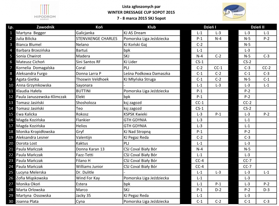 Winter Dressage Cup Sopot - Finał 7-8 marca 2015
