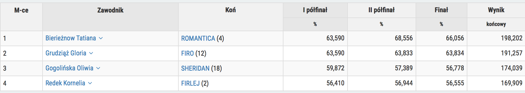 WYNIKI II PÓŁFINAŁ D2 1m. Tatiana Bierieżnow / BPK / Romantica / 68,556%