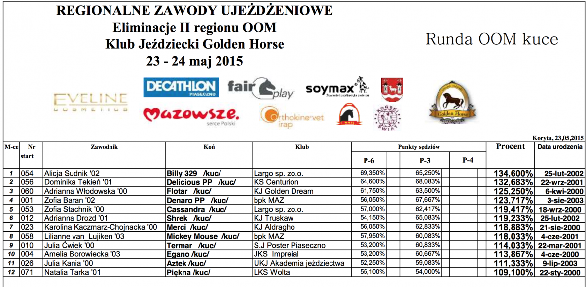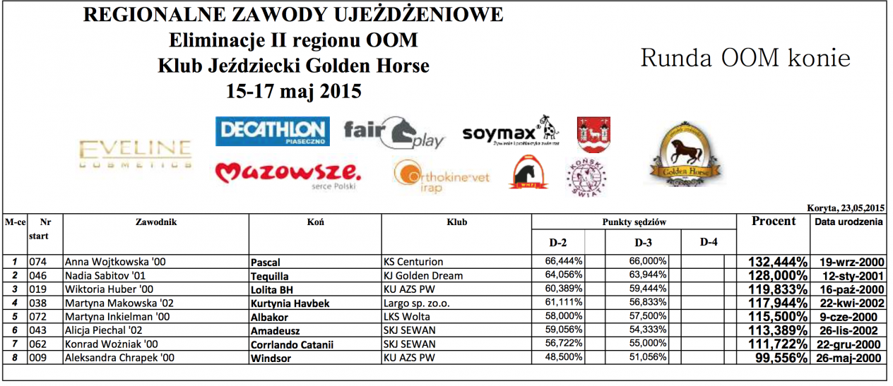 el OOM / ZR / ZT Koryta 23 maja - wyniki