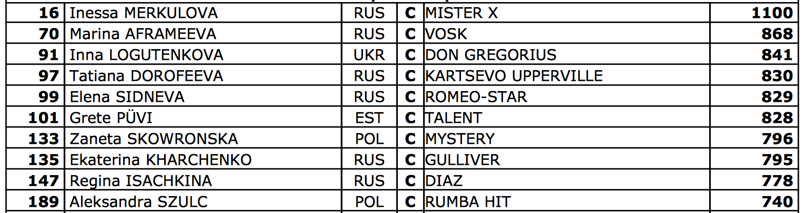 Klasyfikacja po II półfinałach MPS - 1m. Anna Łukasik i Stella Pack Ganda