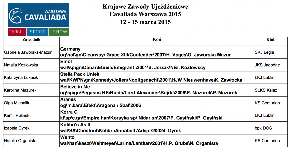 Hipodrom Sopot Finał Winter Dressage Cup - zgłoszenia do 04.03.15