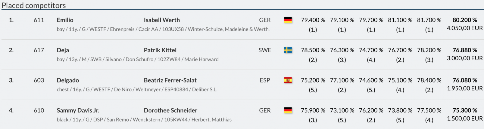 2m. Isabell Werth GER Don Johnson Frh 77,440